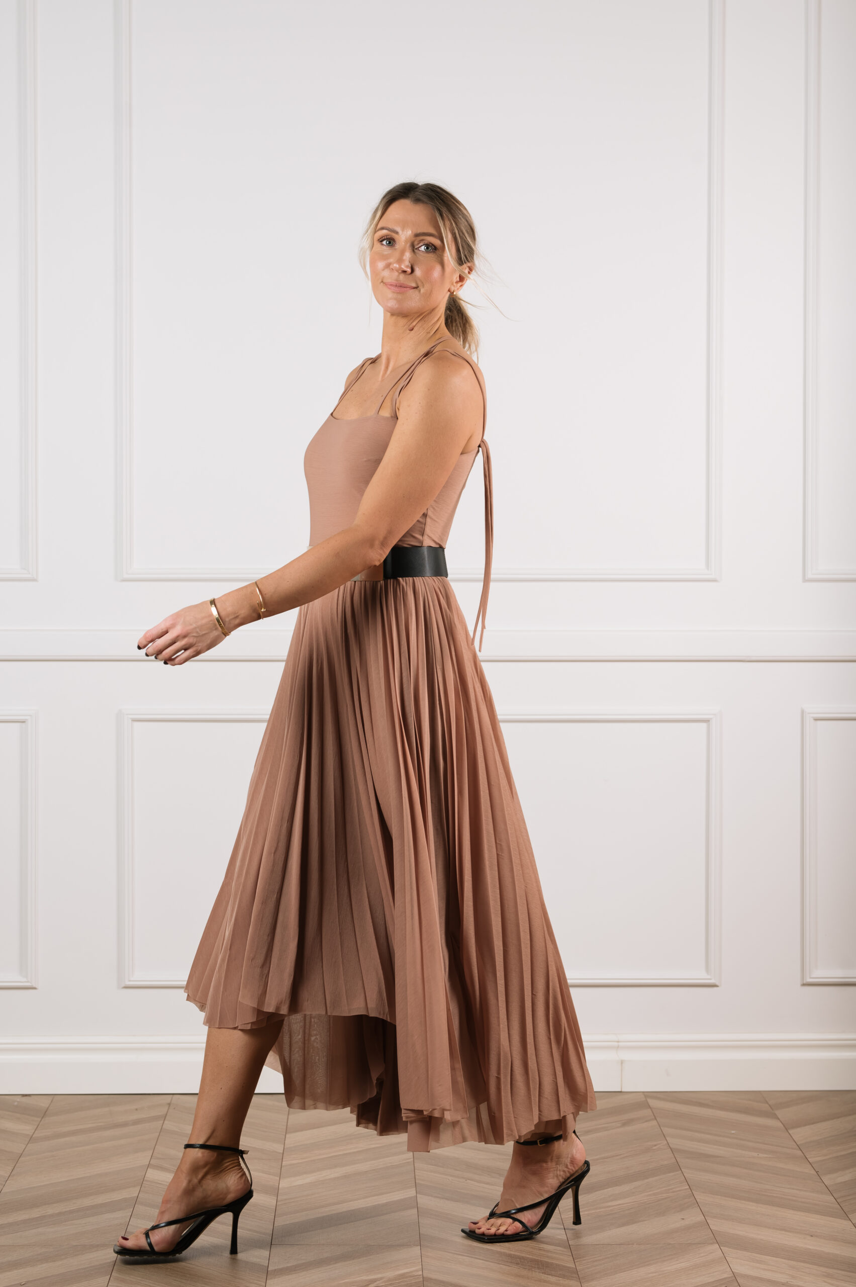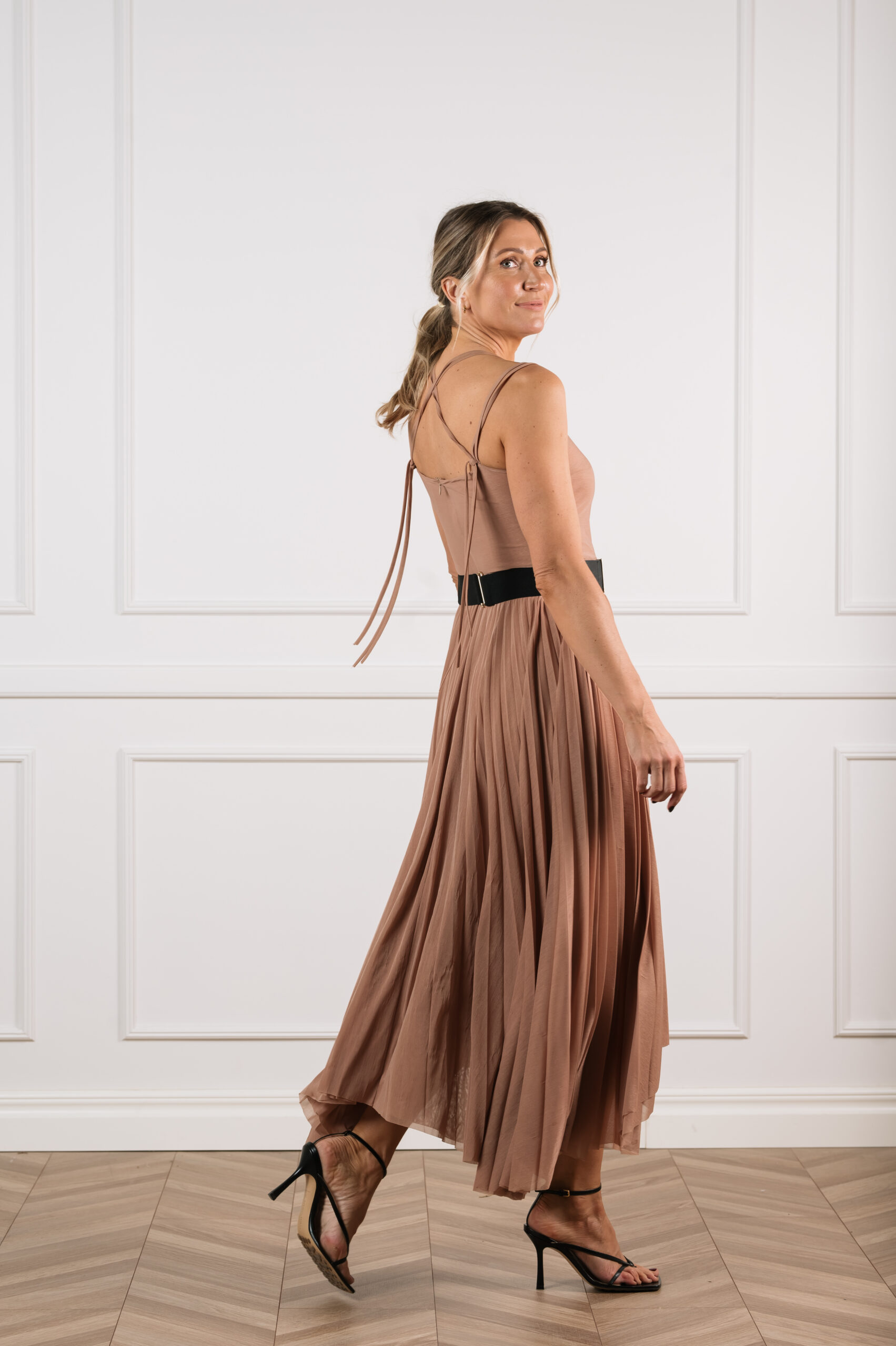 õrnade reguleeritavate paeltega loob modernse silueti, mida tasakaalustab mänguline ja